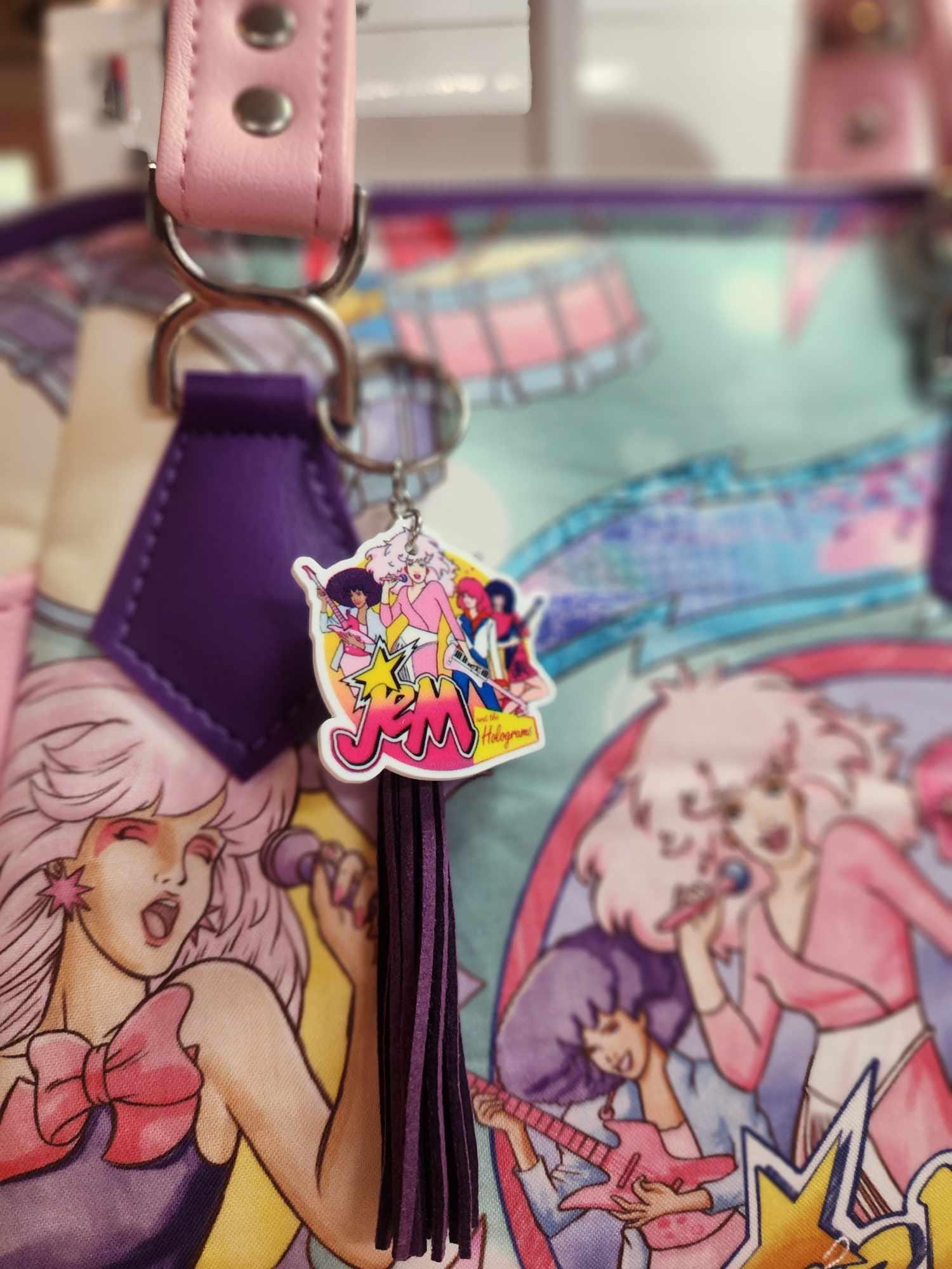 Character Exterior: The outer shell showcases a vibrant fabric adorned with fun Jem & the Holograms characters, infusing a playful touch into your ensemble.