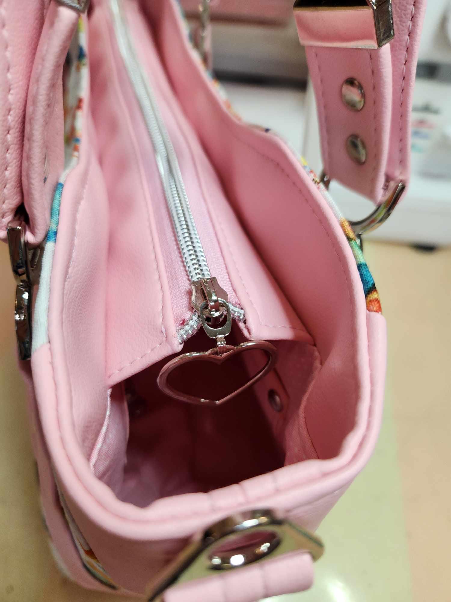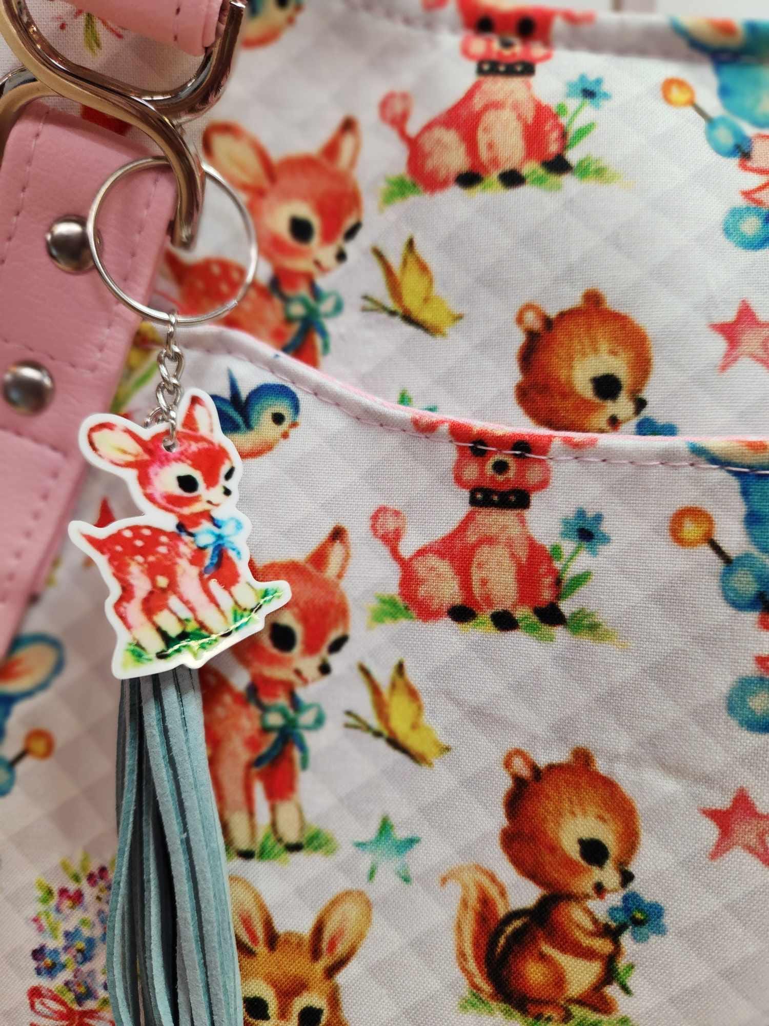 The main zipper, designed with a charming heart shaped zipper pull, securely closes the bag. Both sides of the outside of this bag feature deep pockets, the ends have a lovely and unique design. There is also a detachable, adjustable crossbody strap for added convenience. This handbag is an absolute must-have for any fan of the beloved characters. Embrace your love for vintage baby animals with this perfect accessory!