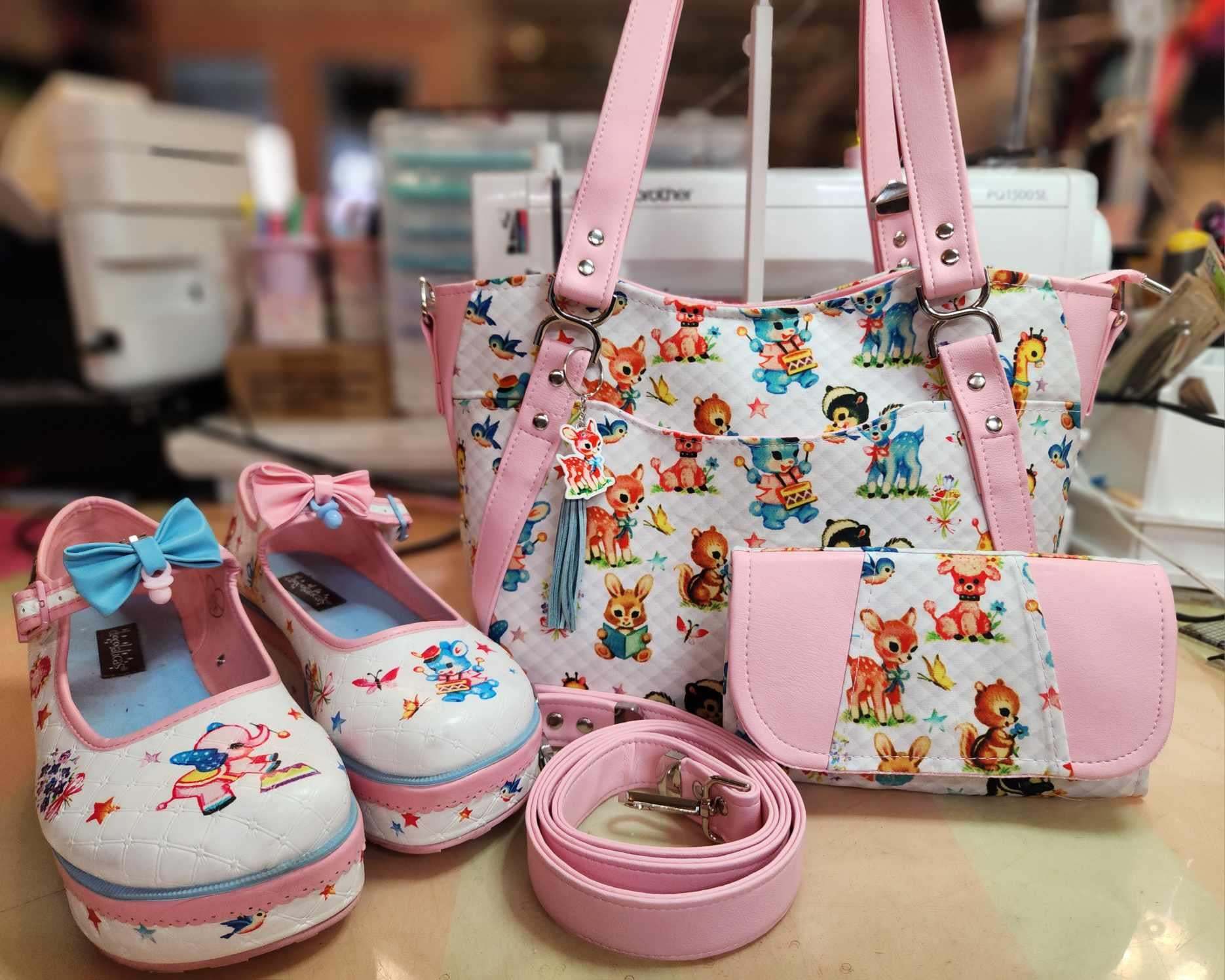 Introducing a delightful kitschy Baby Animals quilted look handbag, meticulously crafted to order. This unique purse combines a fabric featuring charming vintage baby animals decal graphics with pastel pink vinyl accents. This handbag is a testament to the utmost attention given to every detail, ensuring a high-quality accessory that you'll proudly carry.