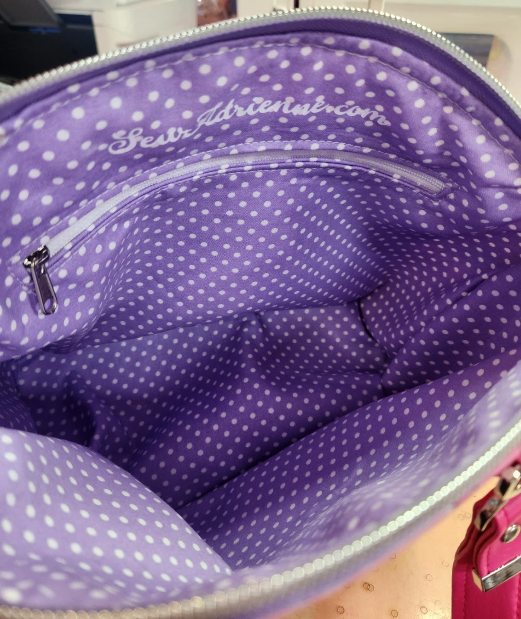 Show your love with this vibrant and nostalgic custom handbag. The main fabric showcases custom-printed character cotton, perfectly paired with high-quality marine vinyl. The interior fabric delights with dotted cotton.