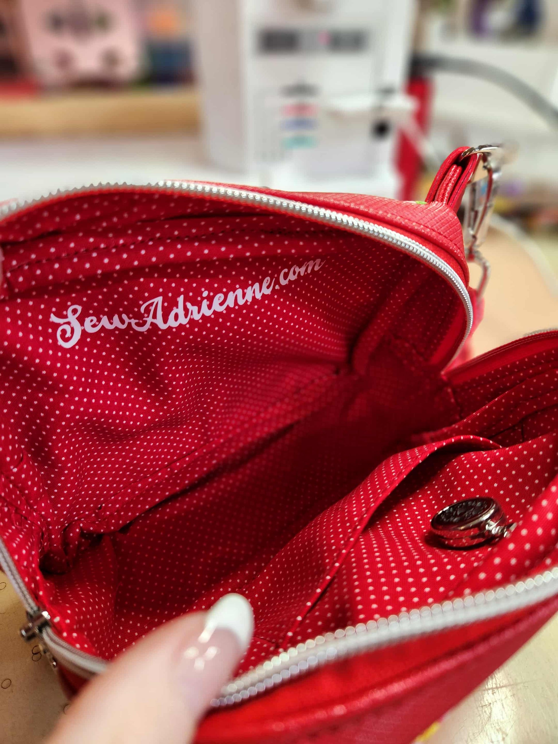 The main fabric showcases a fun character print paired with coordinating quality viny. The bag is fully interfaced and lined. It features a convenient zipper pocket for added storage.