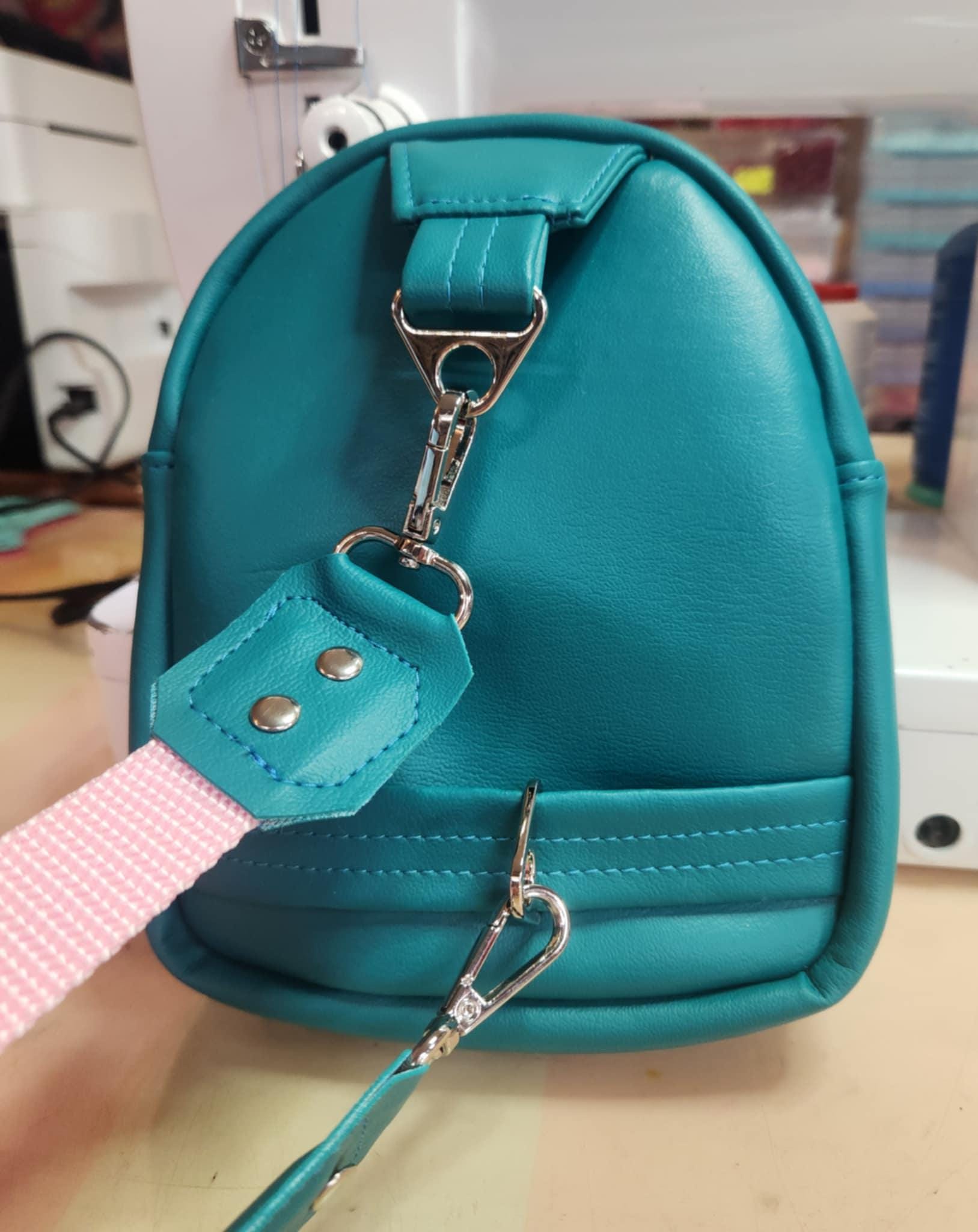 Every attention to detail is made to bring you a quality backpack you'll be happy to carry. The main fabric is a Strawberry & Friends print, the coordinating fabric is quality marine vinyl. Bag is fully interfaced and lined in a dotted print, has a zipper pocket for added storage. The main zipper features a character pull. The strap is adjustable to 55 inch and has swivel clip to secure the top, and a slide connector at the bottom for ease of wearing on either side.