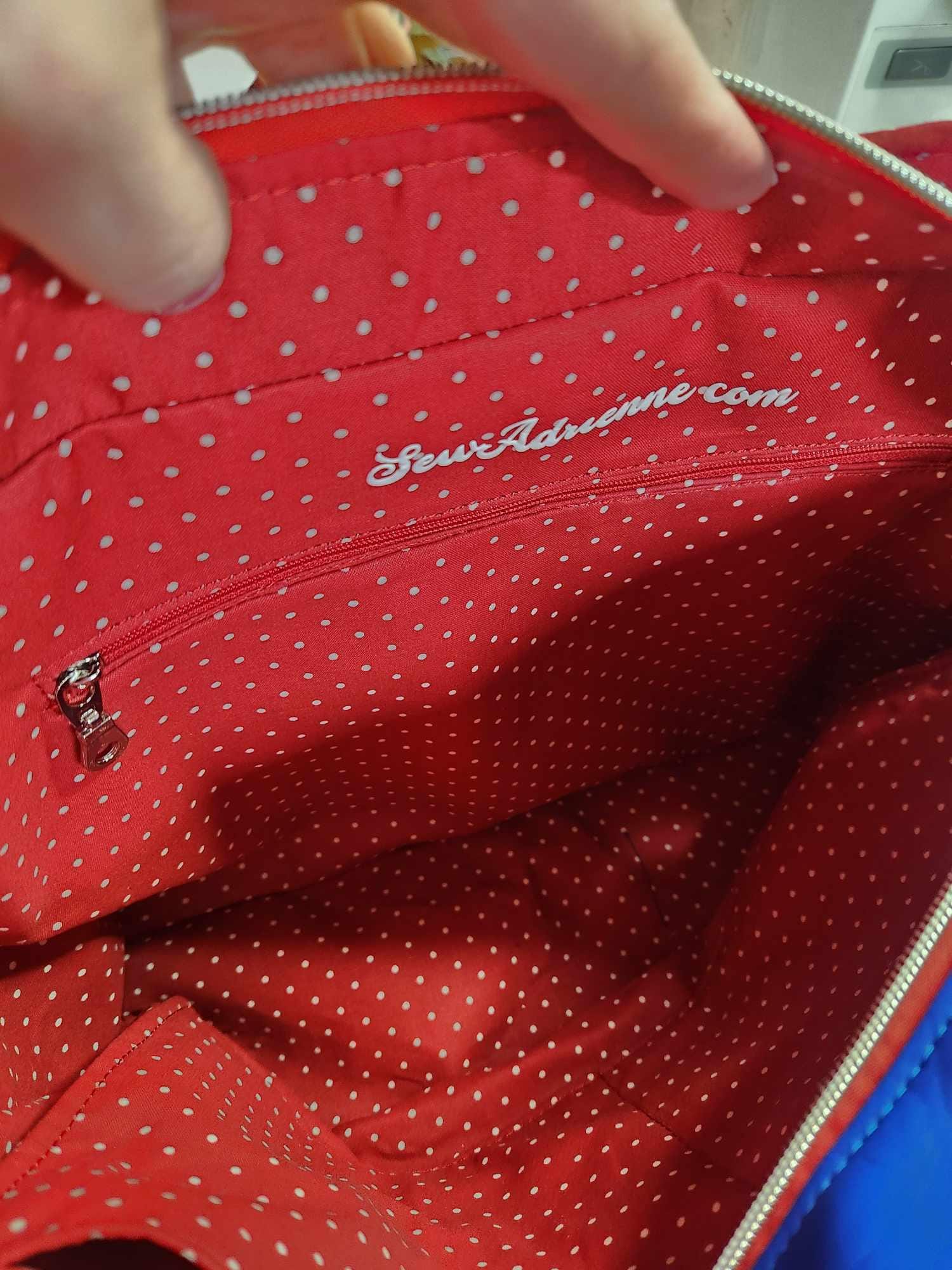 The main fabric of the bag features a delightful cotton print showcasing the lovable characters, while the coordinating fabric is made of premium marine vinyl. To enhance its durability and structure, the bag is fully interfaced, and its interior is lined with a delightful dotted cotton print. Inside, you'll find a convenient zippered pocket and a handy divided slip pocket.